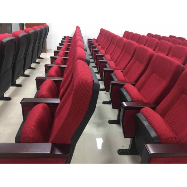 | Material | 1. seat & back: high density moulded PU foam inside covered with fabric 2. Shell: mult-layer plywood 3. Armrest: solid wood 4. Frame: 2.3MM cold-rolled steel plate 5. Tip-up mechanism: damping reversion/gravity |